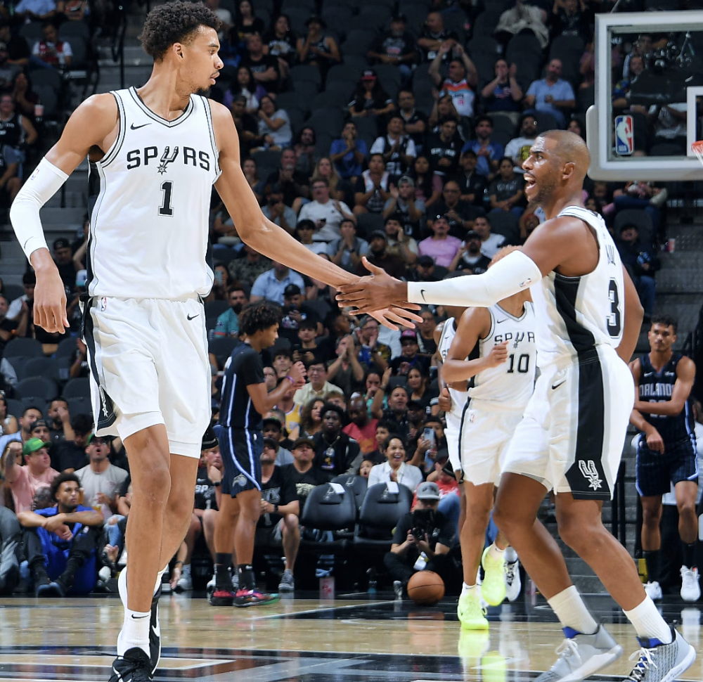 크리스 폴이 샌안토니오 스퍼스에서 첫 프리시즌 경기를 치렀습니다. NBA 12회 올스타에 빛나는 폴은 자신의 새로운 팀 스퍼스 팬들에게 큰 환호를 받으며 데뷔했으며, 경기 중 빅터 웸바냐마에게 던진 첫 어시스트로 강렬한 인상을 남겼습니다. 폴의 첫 어시스트는 웸바냐마를 위한 앨리웁 패스였고, 웸바냐마는 이를 완벽한 덩크로 마무리하며 팬들의 열렬한 환호를 이끌어냈습니다.