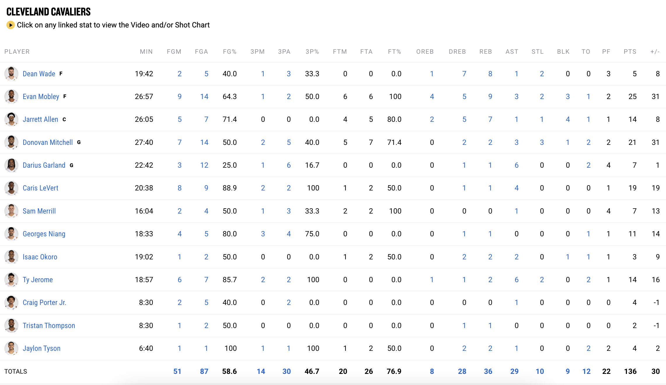 캐벌리어스는 경기 내내 토론토를 압도하며 한때 33점 차로 앞섰습니다. 에반 모블리는 14번의 슛 중 9개를 성공시키며 페인트존에서만 68-38로 랩터스를 앞섰습니다. 자렛 앨런은 경기 후반 중요한 덩크 슛을 3차례나 성공시키며 클리블랜드의 공격을 주도했습니다. 또한, 부상으로 빠진 맥스 스트루스를 대신해 선발로 출전한 딘 웨이드는 8개의 리바운드를 잡아내며 리바운드 싸움에서도 우위를 점했습니다.