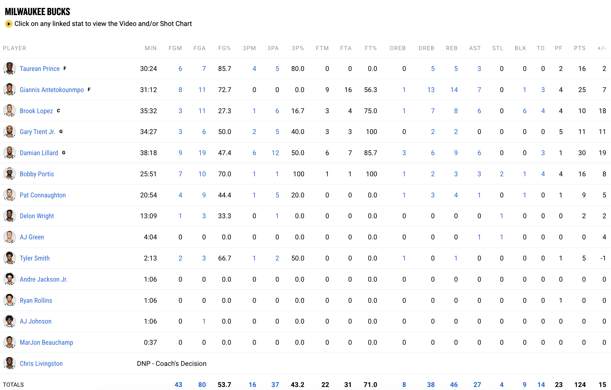 밀워키는 릴라드와 아데토쿤보 외에도 토리언 프린스와 바비 포티스가 각각 16점을 기록하며 팀의 득점을 뒷받침했습니다. 벅스는 팀 전체적으로 16개의 3점 슛을 성공시키며 필라델피아의 수비를 무너뜨렸습니다. 특히 릴라드와 브룩 로페즈는 경기 내내 픽앤롤을 자주 활용해 필라델피아의 수비를 공략했습니다. 로페즈는 3점 라인 근처에서부터 픽을 설정해 릴라드에게 넓은 공간을 만들어 주었고, 릴라드는 이를 이용해 효과적으로 득점을 만들어냈습니다.